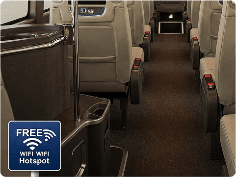 When you and your group are picked up to start trip, you’ll notice top-notch amenities to make your journey comfortable.